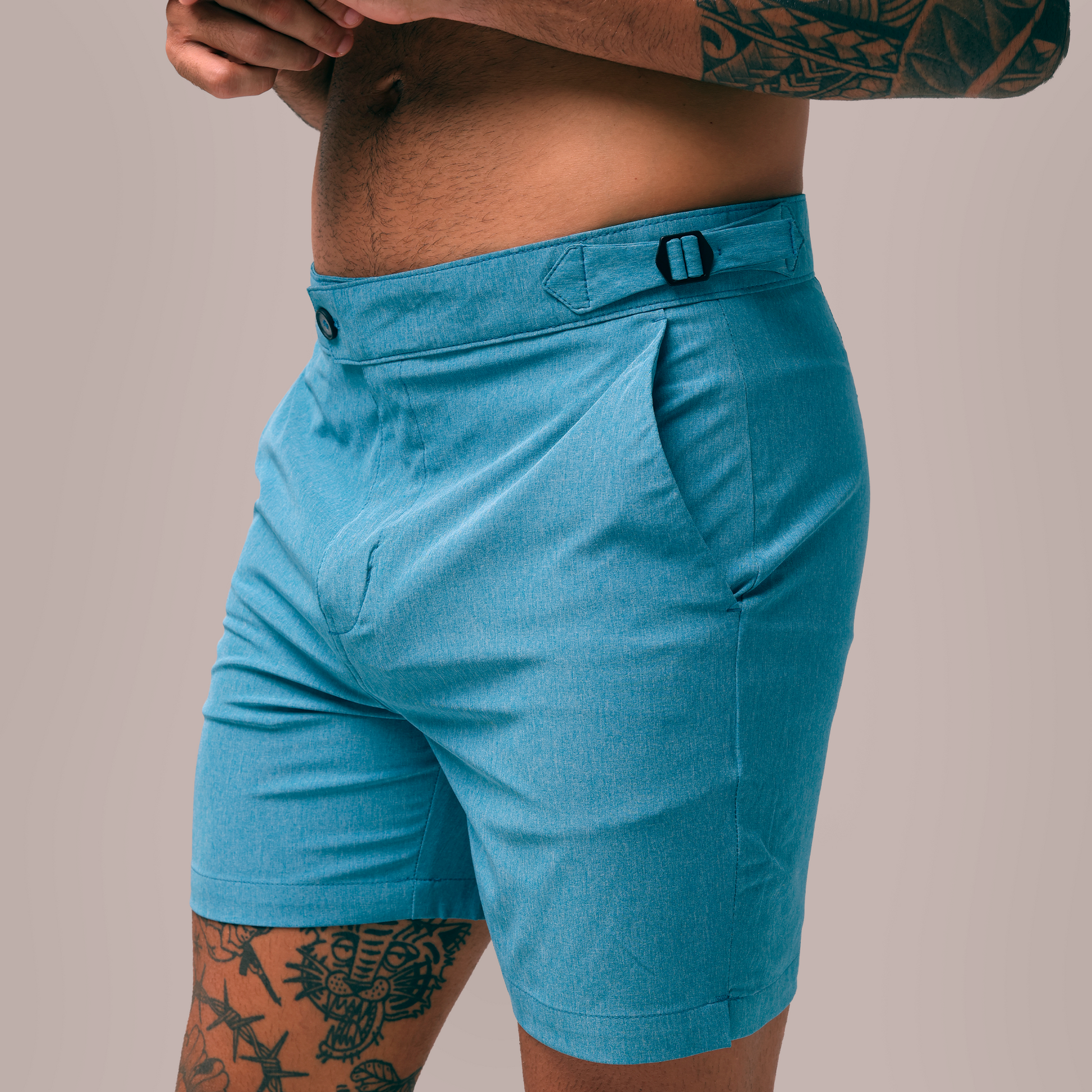 O ajuste lateral com fivela elimina a necessidade de cinto, enquanto o bolso traseiro com zíper embutido adiciona praticidade sem comprometer o visual minimalista da KHEMENES. O tecido não amassa e dispensa o uso do ferro, mantendo o short sempre alinhado.